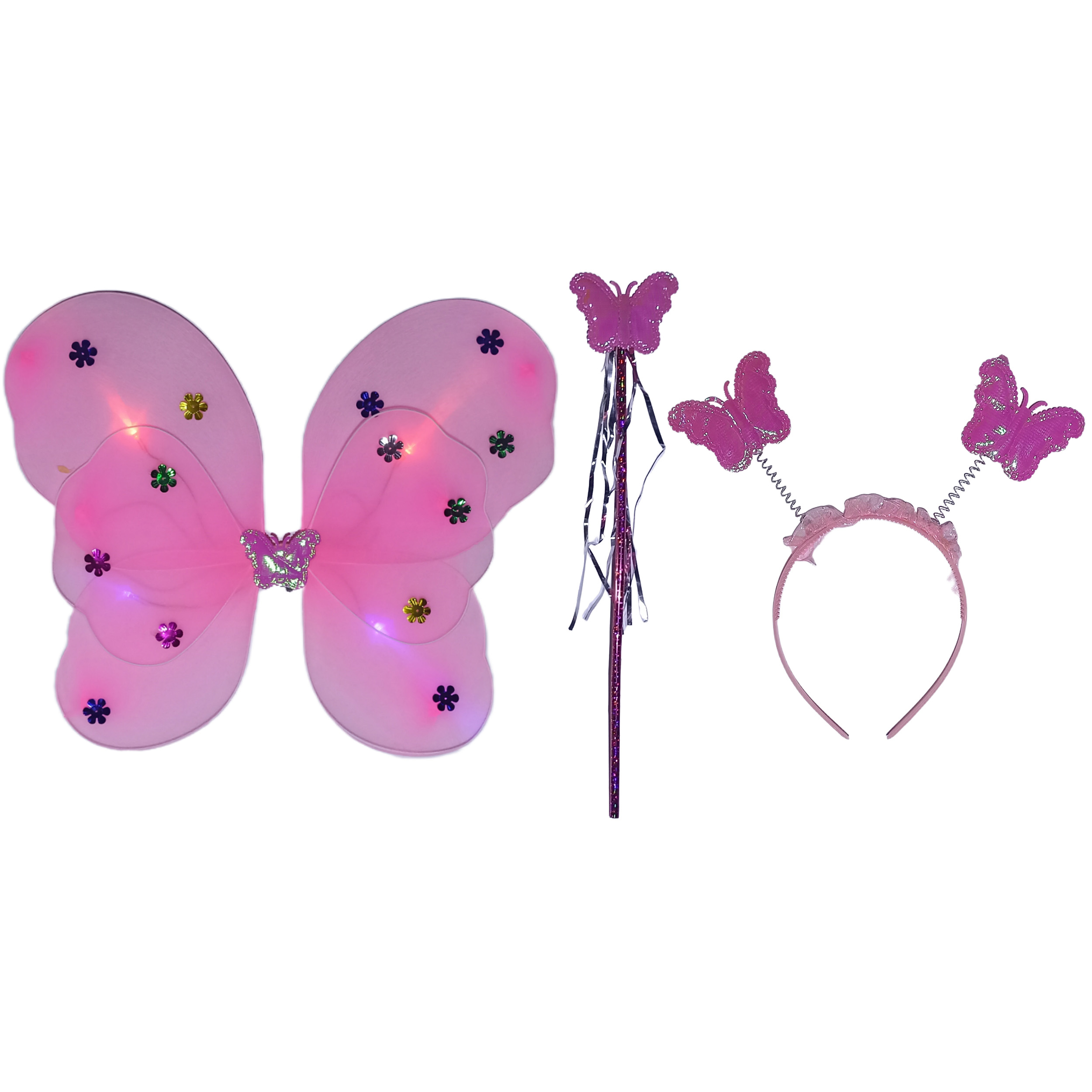 دختر کوچولوها خیلی دوست دارند که لباس های خاص بپوشند و شبیه شخصیت های مورد علاقه شان شوند. برای اینکه دخترتان را شبیه یک فرشته کنید به یک جفت بال و چوب جادو نیاز دارید. این ست بال و تل و چوب دستی زیبا در 5 رنگ مختلف موجود است. از این ست می توانید در تولدها و سایر جشن ها و میهمانی های خاص استفاده کنید.این مدل از بال فرشته دارای چراغ های چشمک زن سه حالته هستند .