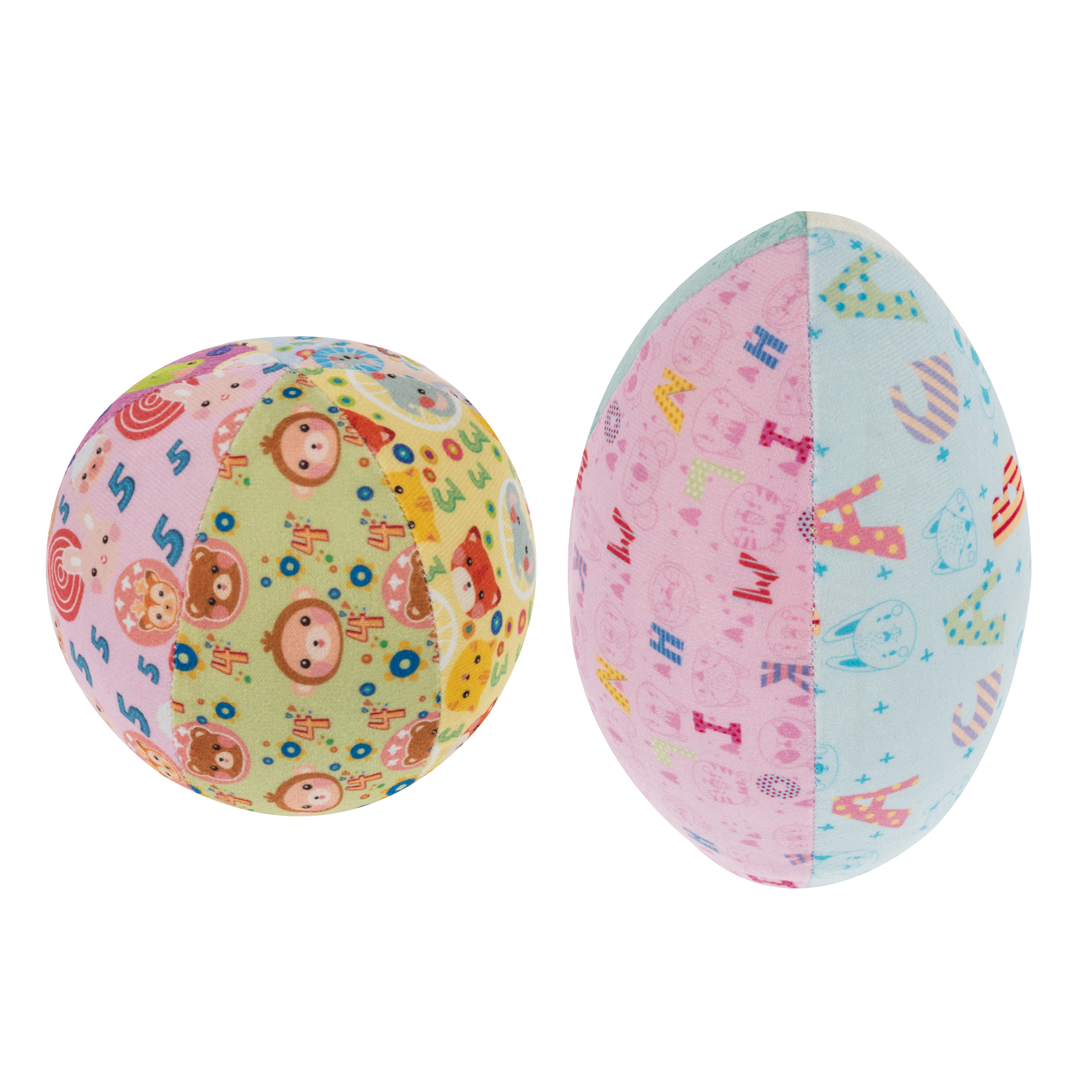 خلاصه روش بازی: این محصول شامل دو توپ جغجغه ای مدل راگبی و هندوانه ای است که حروف و اعداد انگلیسی روی آن چاپ شده است با توجه به اینکه این محصول به عنوان پک نوزاد ارایه می‌گردد، لذا نکات ایمنی این گروه سنی که شامل رعایت استفاده از چاپ غیر مستقیم بر روی پارچه است، لحاظ گردیده تا در شستشو و تماس با دهان کودک رنگ پس دادگی نداشته باشد. در تولید این محصول از پارچه ای استفاده شده که علاوه بر نرم و مقاوم بودن با ایجاد پرز حساسیت ایجاد نکند.