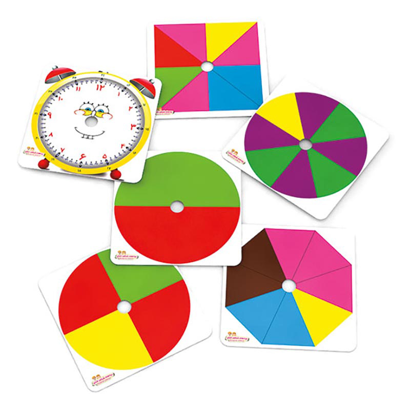 اقلام همراه: صفحه بازی – 1 عقربه بزرگ – 1 عقربه کوچک – 2 عدد پین – 6 کارت اسباب بازی آموزشی