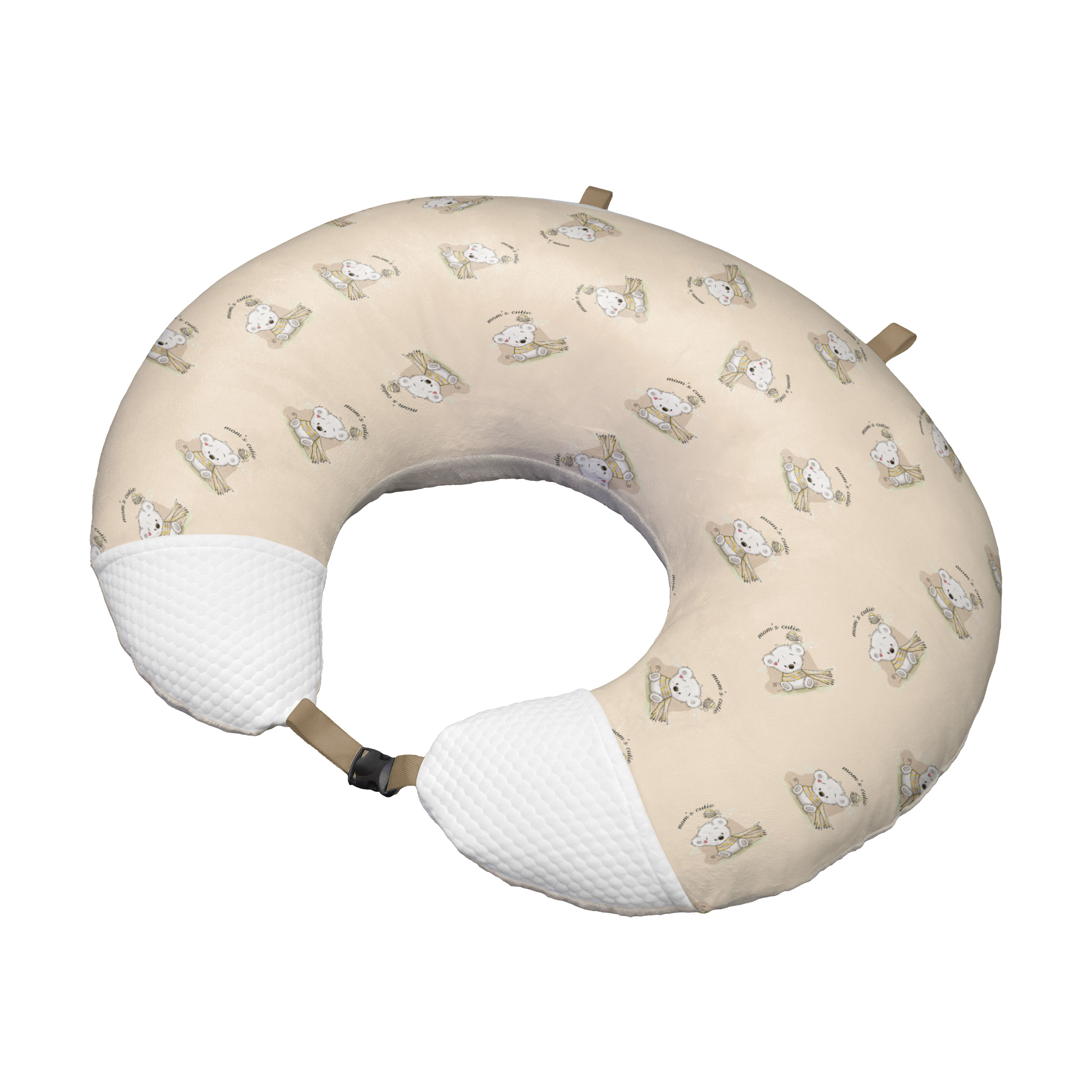 از دیگر محصولات مامزکیوتی بالش شیردهی میباشد که یک بالش چند منظوره است. این بالش به عنوان بالش شیردهی به راحتی با بند به کمر مادر بسته می شود و مادر و نوزاد را در وضعیت ارگونومیک قرار می دهد تا شیر دادن را راحت تر کند و از کمردرد و آسیب های گردن و شانه جلوگیری کند. هم چنین در این حالت می توانید از جیب های این بالش برای قرار دادن پد شیردهی یا وسایل دیگر استفاده کنید. کاربرد دیگر این بالش به عنوان بالش تامی تایم است. برای زمانی که لازم است نوزاد به شکم دراز بکشد. در این حالت می توانید به دو حلقه ای که در بالش وجود دارد دندان گیر یا اسباب بازی های مورد علاقه فرزندتان را آویزان کنید تا کودک از این وضعیت خوابیدن لذت بیشتری ببرد. کاربرد دیگر این بالش برای آموزش نشستن وبه عنوان نشیمن کودک است تا کودک در محیطی ایمن و نرم باشد و نگرانی از افتادن کودک به طرفین وجود نداشته باشد. در این حالت بهتر است با وارو کردن جیب ها بند را درون جیب های دو طرف بالش پنهان کنید تا از دسترس کودک خارج شوند. روکش این بالش از پارچه صد در صد پنبه ای تهیه شده، زیپ دارد و قابل جدا شدن و شستشو می باشد.