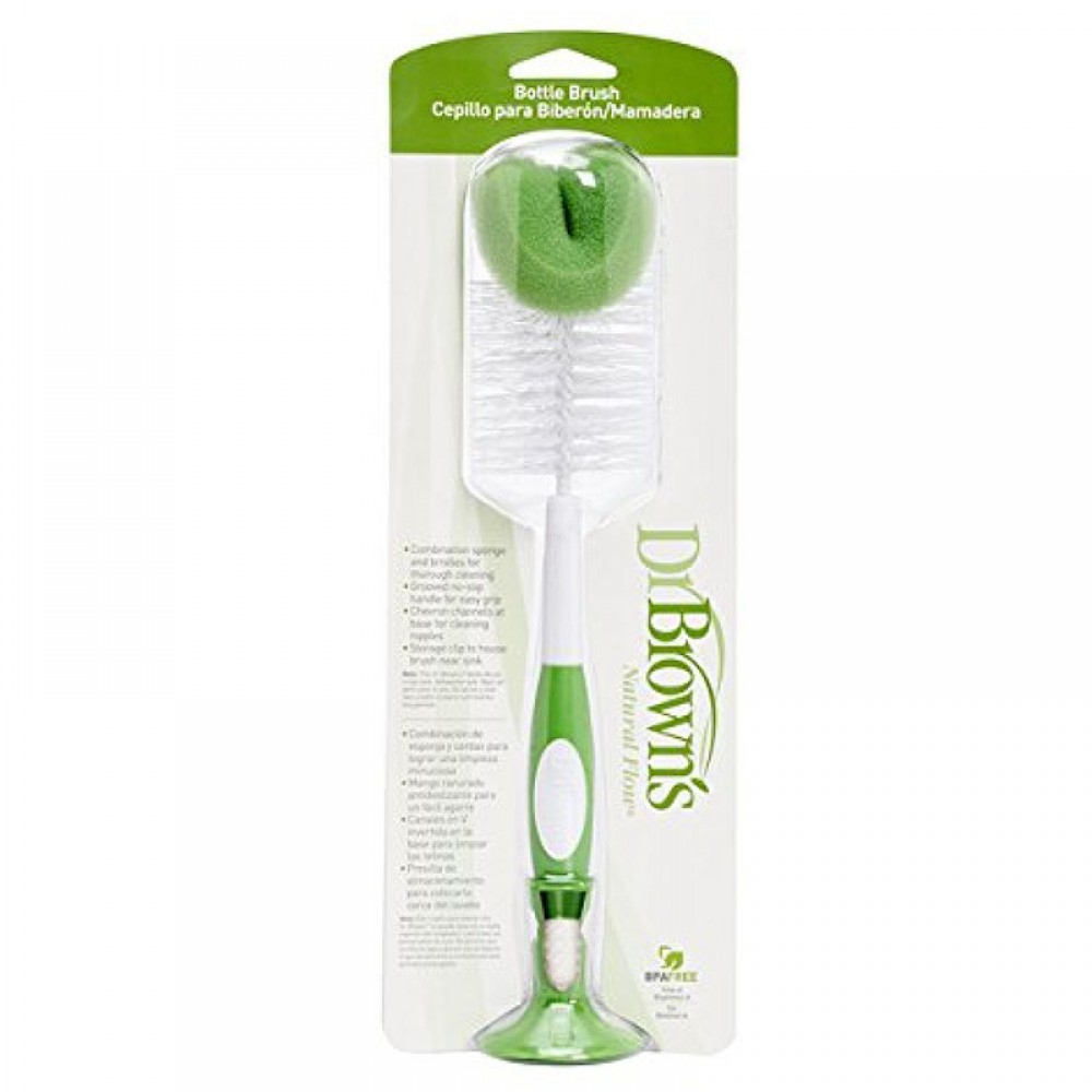 باقی ماندن اثر شیر یا هر نوع مایعات دیگری بر روی شیشه شیر می تواند محل تجمع انواع آلودگی ها باشد و موجب رشد میکروب و باکتری ها در شیشه شیر گردد و سلامت کودک را نشانه می گیرد. پس از خرید محصولات حساسی چون شیشه شیر یا پستانک و بعد از هر بار استفاده، باید آن ها را به خوبی شست، در شست و شوی این محصولات به نکات مهمی باید توجه داشت از جمله اینکه نباید از مایعات شوینده قوی استفاده کرد؛ مایعات شست و شوی کودک نیز باید به خوبی پس از شست و شو، آبکشی شوند. شیشه شوی دکتر براون محصولی خوش ساخت می باشد که در جهت هرچه سلامت نگه داشتن شیشه شیر کودک می تواند به شما کمک کند. برس شیشه شوی دکتر براون یک برس از جنس پلاستیک با طراحی ارگونومیک است. طراحی منحصر به فرد، جنس پلاستیک مرغوب و با کیفیت، ترکیب الیاف نرم واسفنج، وجود برس سرشیشه، پایه نگهدارنده چسبی از جمله ویژگی‌های شیشه شوی دکتر براون به شمار می‌آیند. این محصول با داشتن دسته بلند و فرچه اسفنج دار نرم و انعطاف ‌پذیر به خوبی انواع سایزهای شیشه شیر را میشوید و تمامی قسمت های شیشه شیر را به دقت تمیز کرده و نخواهد گذاشت اثری از آلودگی بر روی آن بماند. طراحی ارگونومیک بدنه شیشه شوی دکتر براون باعث می‌شود، برس در دستان شما به خوبی قرار گیرد و شست‌ و‌شو شیشه به طور کامل انجام شود. الیاف نرم به کار رفته در شیشه شوی دکتر براون به همراه یک تکه اسفنج، مانع از ایجاد خراش در سطح داخلی شیشه شیر شده و در نهایت شست‌ و‌شو بهتری را ارائه خواهد نمود. هم چنین در قسمت انتهایی شیشه شوی دکتر براون یک برس، برای شست ‌و‌شو سرشیشه نیز تعبیه گردیده است. قسمت پلاستیکی انتهایی شیشه شوی دکتر براون دارای پایه نگهدارنده چسبی بوده که به صورت سربست عمل کرده و همچنین به شما این امکان را می‌ دهد تا آن را به صورت ایستاده روی سطوح صاف قرار دهید. شیشه شوی دکتر براون فاقد ماده مضر شیمیایی و BPA می باشد تا با خیالی آسوده از آن جهت تمیز کردن شیشه شیر کودکتان بهره ببرید و نگران تاثیرات منفی مواد سازنده آن و واکنشش با آب گرم نباشید. این محصول خوش ساخت قابل استفاده برای بطری شیشه شیر، سرشیشه و درپوش آن بوده و با ابعادی نسبتا متوسط و طراحی متناسب با فرم دست‌های شما، به طور کامل جداره داخلی شیشه و سرشیشه را پاک کرده و کوچک ترین حساسیتی ایجاد نمی ‌کند.