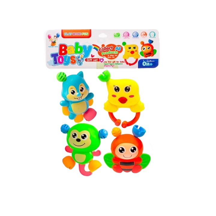 ست جغجغه مجموع 4 عددی ساخته شده از مواد ضد حساسیت تولید داخل ساخت ایران….مشتری گرامی لطفا هنگام سفارش کالا دقت فرمایید رنگ بندی داخل بسته ها متفاوت میباشد اما طرح مطابق تصویر است.