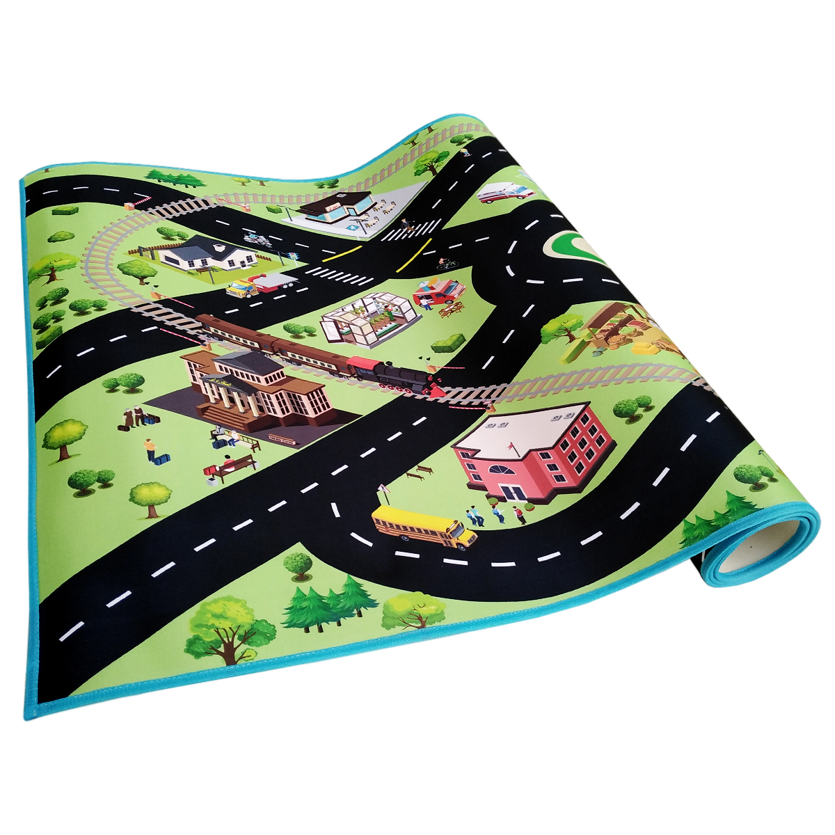 شهرکودک فومی ضخیم و دولایه پارچه وفوم بهمراه کاور PVC و در ابعاد 130×70 سانتیمتر و در ضخامت 3 میلیمتر می باشد.چاپ دیجیتال و قابل شستشو دارد. زیر انداز رایاتوی بصورت دولایه و با پرس پارچه بر روی فوم تولید شده است و در هنگام بازی کودکان جمع و چروک نمیشود و کاربردی است. بسته بندی شیرینگ می باشد. کیفیت و لطافت پارچه برای کودکان بسیار مناسب و لذت بخش است. شهرپارچه ای و یا زیرانداز پارچه ای در طراحی نمای یک شهر با جاده ها و اماکن و تابلو های راهنمایی و رانندگی برای سرگرمی و بازی کودکان یکی از بهترین بازی های خلاقانه شناخته شده است.
