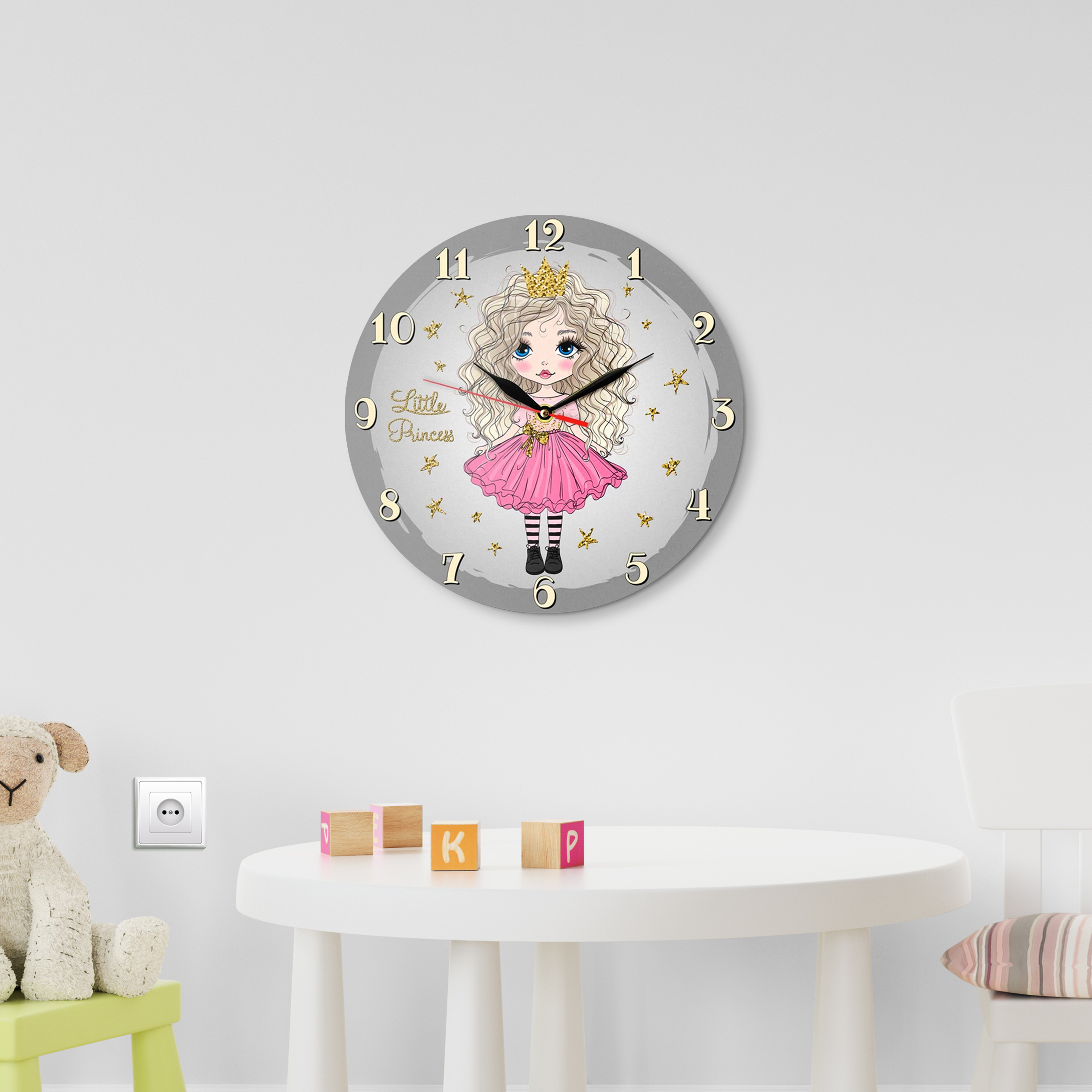ساعت دیواری کودک طرح دختر مو فرفری کد 1326SP