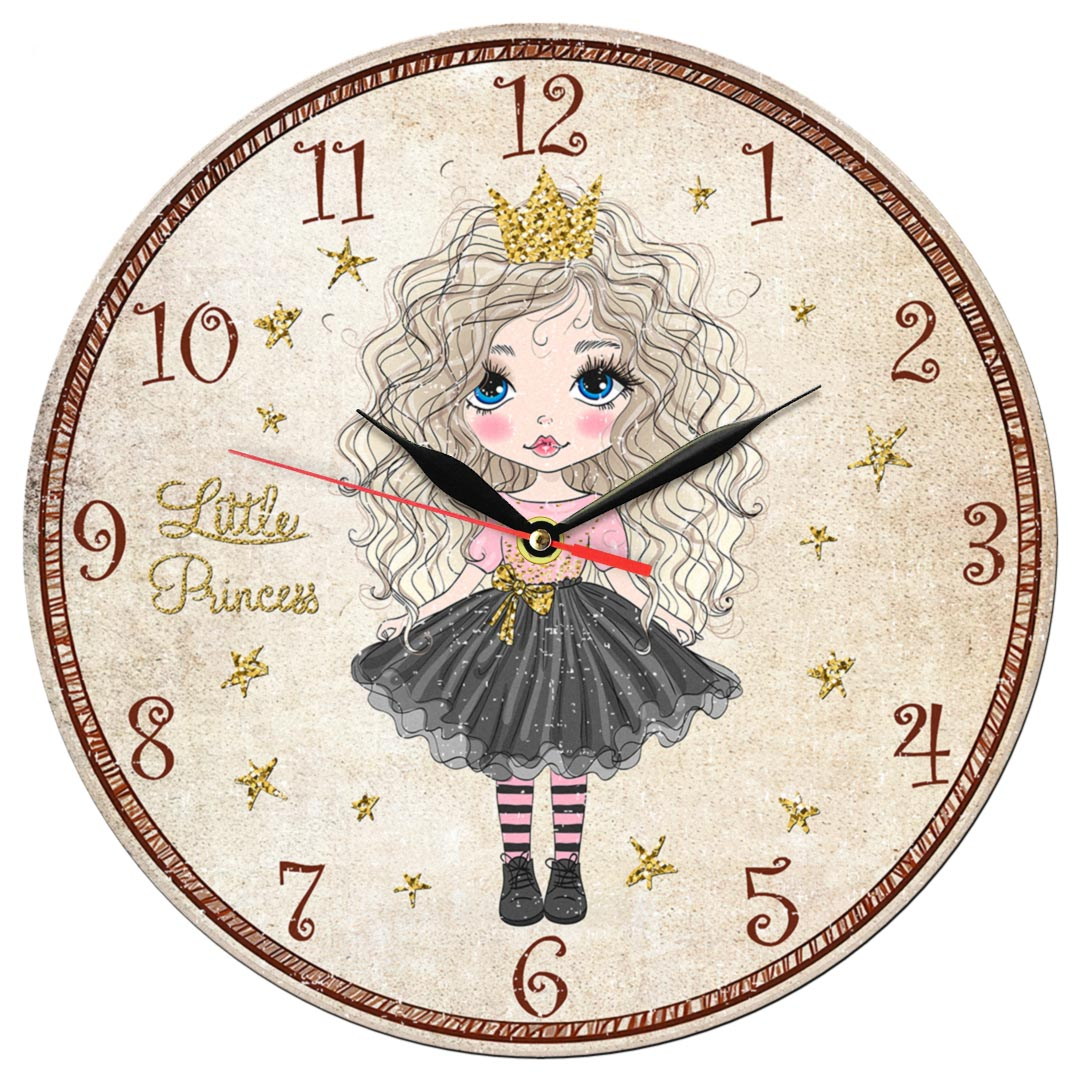 ساعت دیواری کودک مدل 1326CN طرح دختر موفرفری پرنسس کوچولو