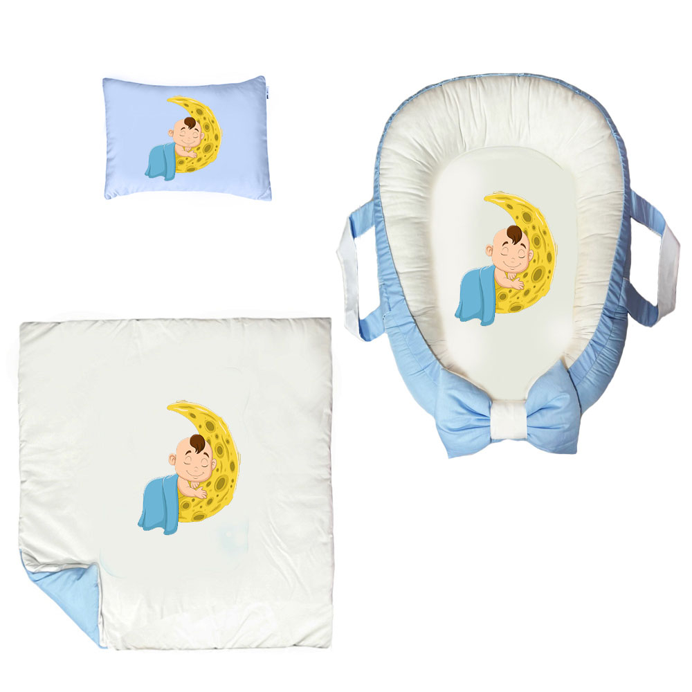 سرویس خواب سه تکه نوزاد ناریکو مدل گارد محافظ دار طرح ماه و کودک کد 0433
