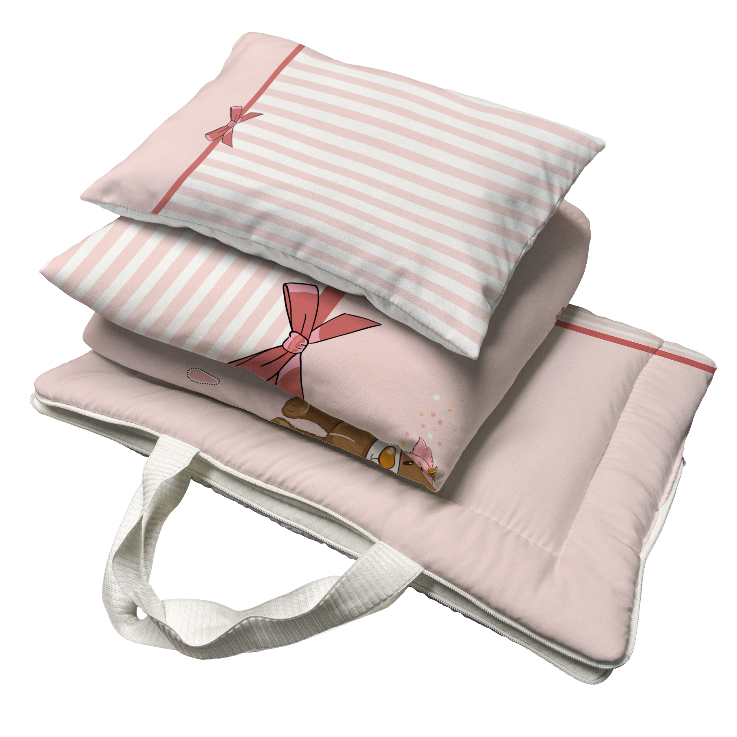 سایر توضیحات: ابعاد تشک 78X58X3 ابعاد لحاف 82X72X3 ابعاد بالش 40X28X6