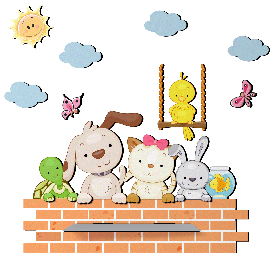 شلف دیواری اتاق کودک باروچین مدل دیوار حیوانات کد sh-24