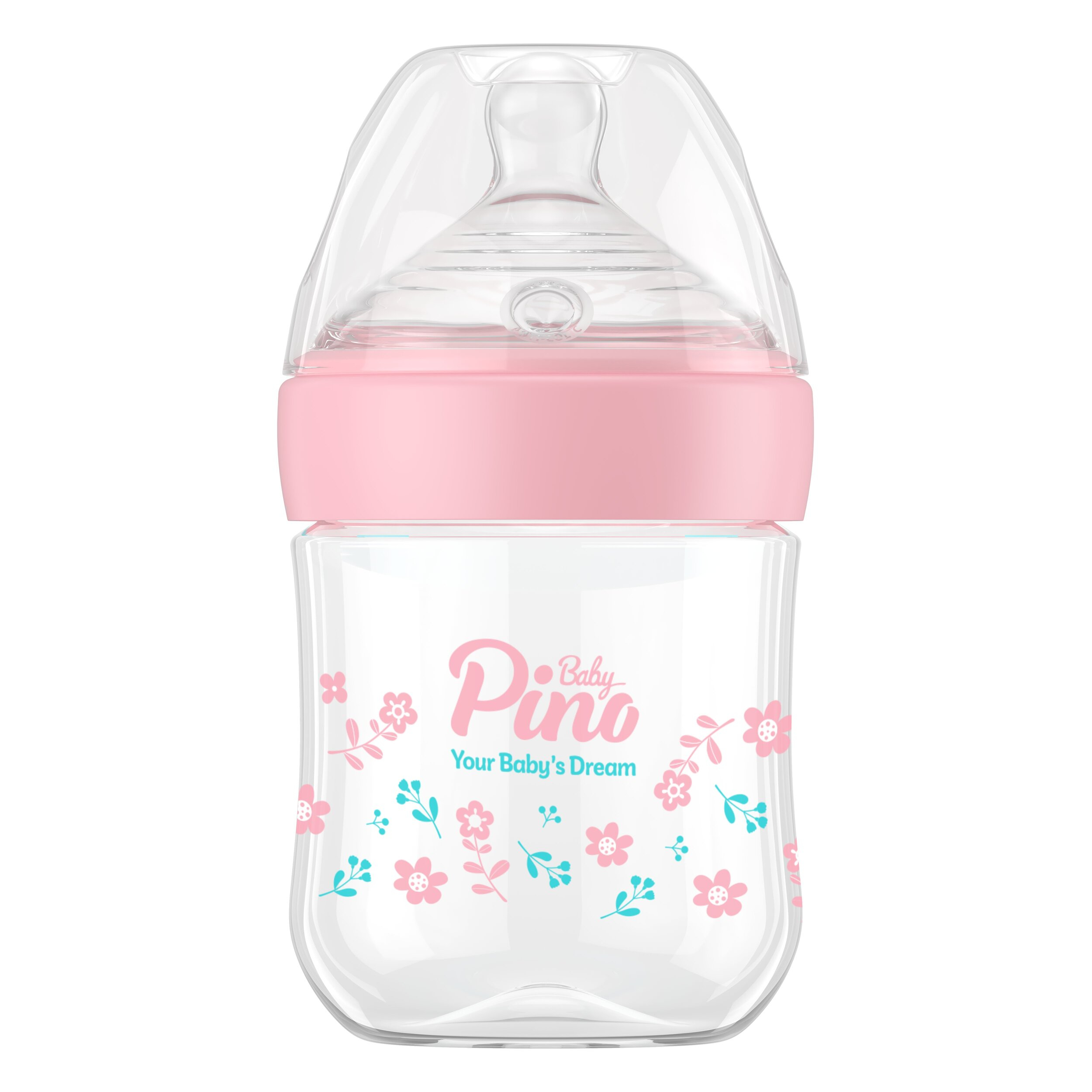 شیشه شیر پینو بیبی و نوع ریزش سرشیشههای پینو بیبی بر اساس مطالعات پزشکی و جهت پذیرش آسان تغذیه همزمان از شیر مادر و بطری، مشابه سینه مادر ( دارای مجراهای متعدد خروجی شیر) طراحی شده است. یکسان بودن سایز دهانه بطریهای پینو بیبی، قابلیت تغییر سایز سرشیشهها را متناسب با سن نوزاد برای مادران فراهم میکند.