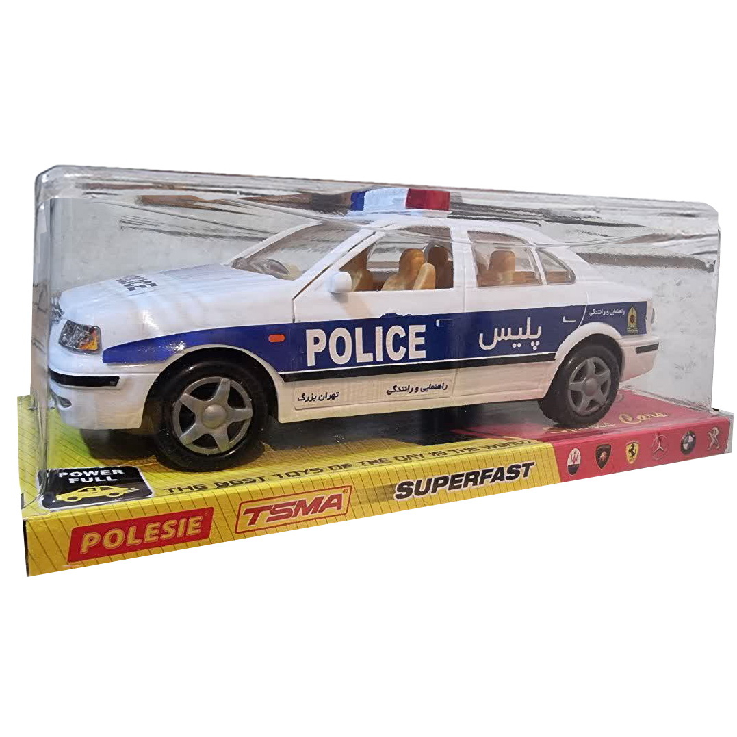 ماشین اسباب بازی سمند پلیس شباهت زیادی با نمونه واقعی آن دارد.در بسته بندی طلقی قرار دارد این محصول ماشین قدرتی است و با هل دادن با سرعت بیشتری مسیر را ادامه می دهد