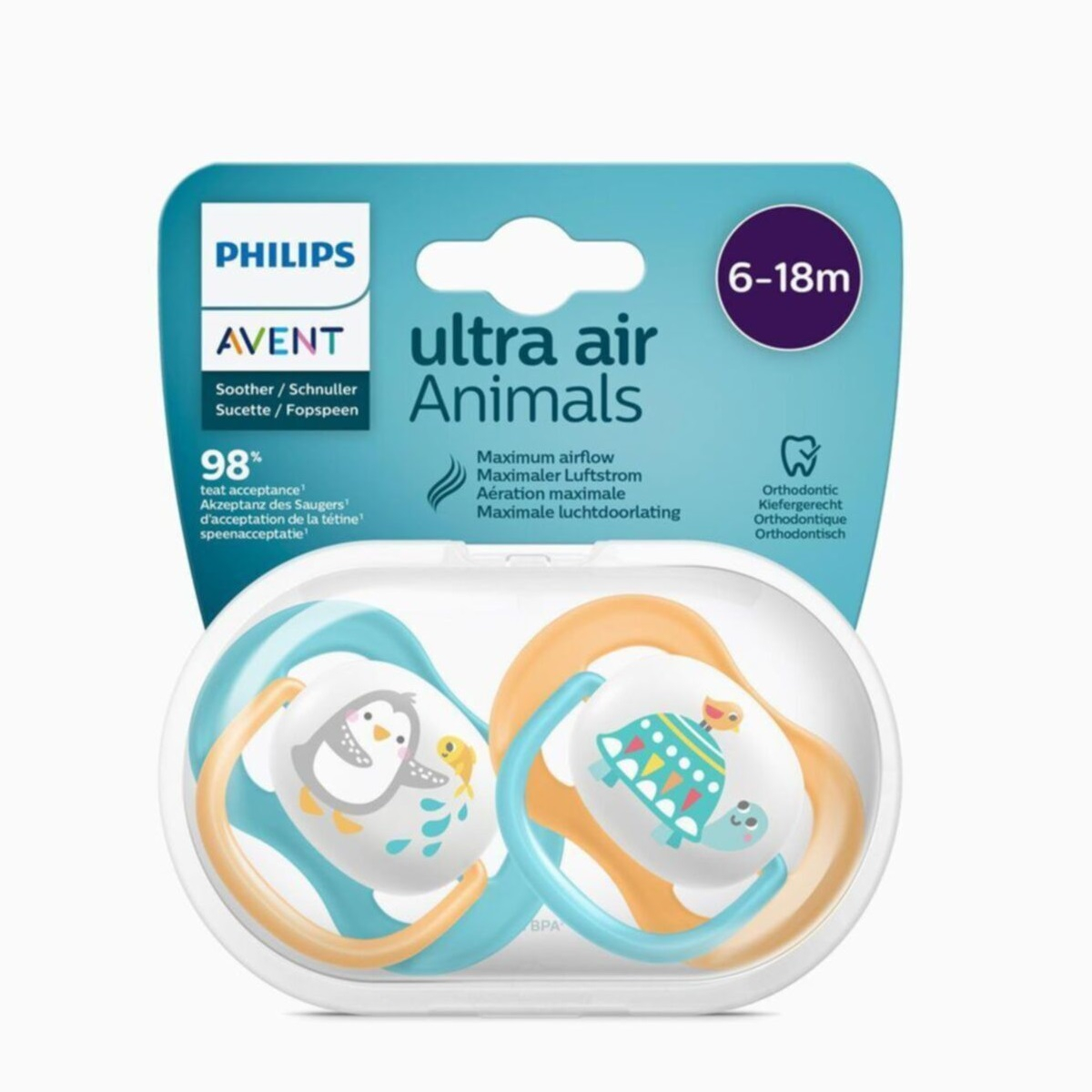 پستانک ارتودنسی اونت طرح لاکپشت و پنگوئن مدل scf 080/07 بسته 2 عددی