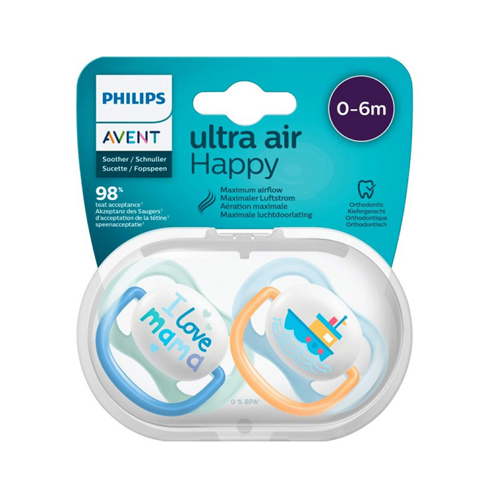 پستانک های الترا ایر فیلیپس اونت بسیار سبک و با داشتن دو سوراخ اضافه امکان عبور هوا در ناحیه اطراف دهان کودک را به راحتی فراهم می کند . این پستانک با سری ارتودنسی بوده ، و فاقد BPA و مواد مضر شیمیایی می باشد.