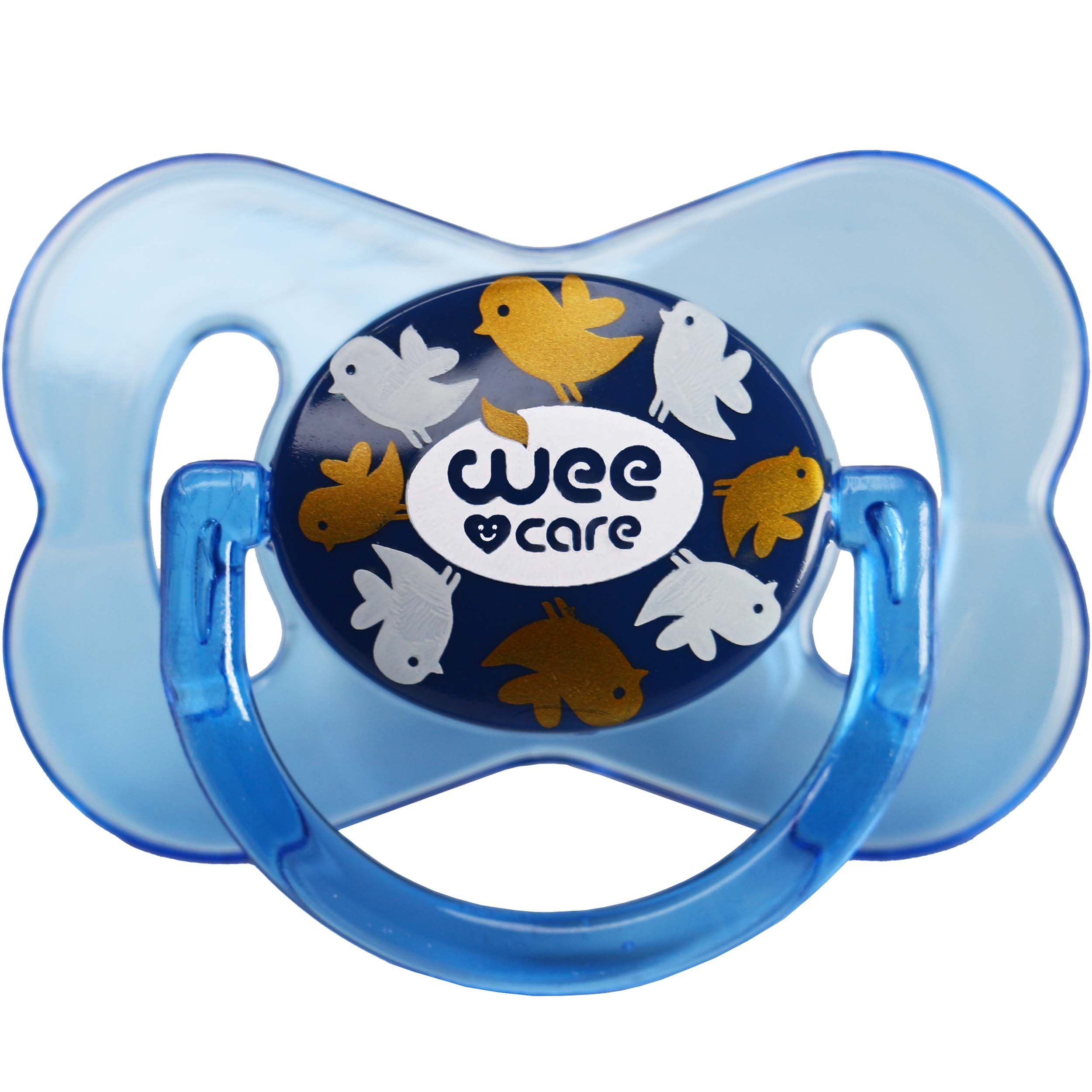 پستانک ارتودنسی وی کر مدل دربدار دسته دار شفاف چاپدار پروانه ای سایز +12 ماه کد P129