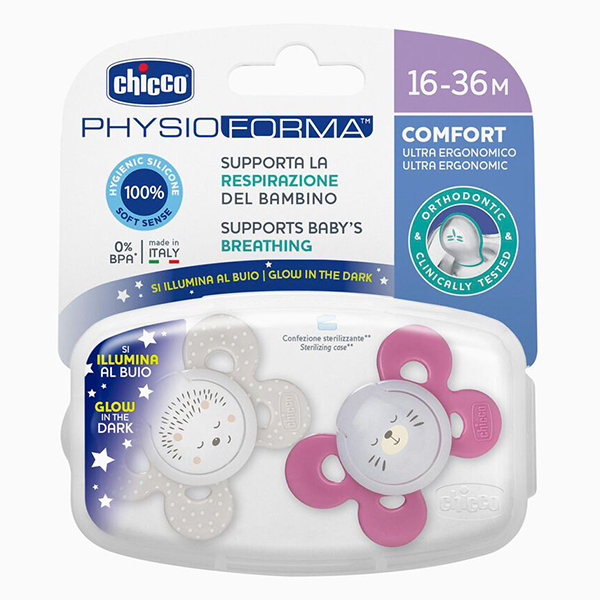 پستانک ارتودنسی چیکو مدل فیزیو کامفورت شبرنگ بسته 2 عددی