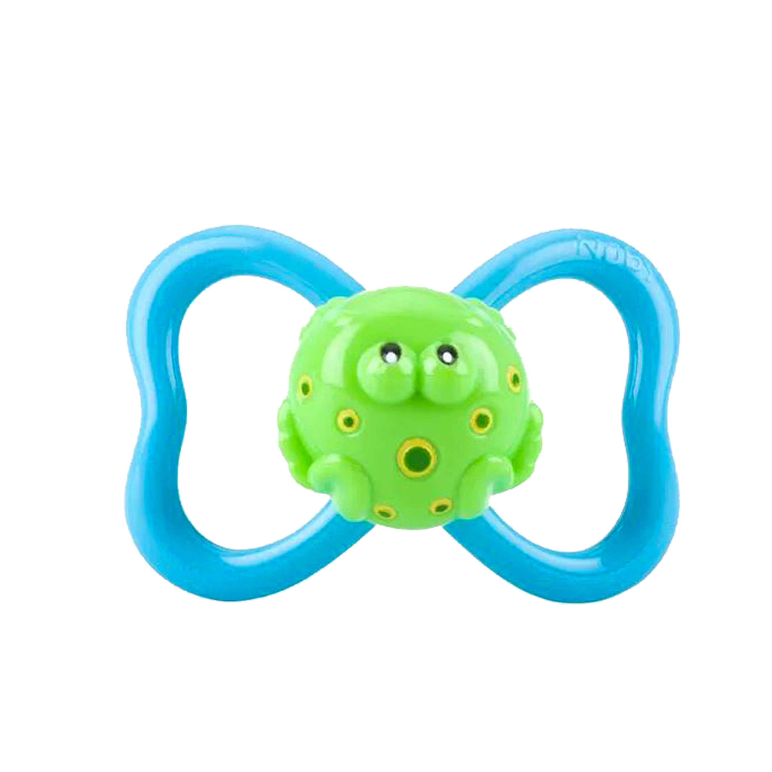 Nuby برند مشهور در زمینه تولید لوازم و اسباب بازی نوزاد دارای طراحی 3 بعدی با اشکال حیوانات موجود در طرح های کفشدوزک ، لاکپشت ، قورباغه و زنبور – دارای سری سیلیکونی – مناسب جهت ماساژ لثه – دارای پوزیشن مناسب و قرینه برای در دهان قرار گرفتن نوزاد دارای بال های باز جهت ورود حداکثر جریان هوا – سرگرم کننده و جذاب برای کودکان – عاری از هرگونه مواد مضر و سمی- بدون BPA