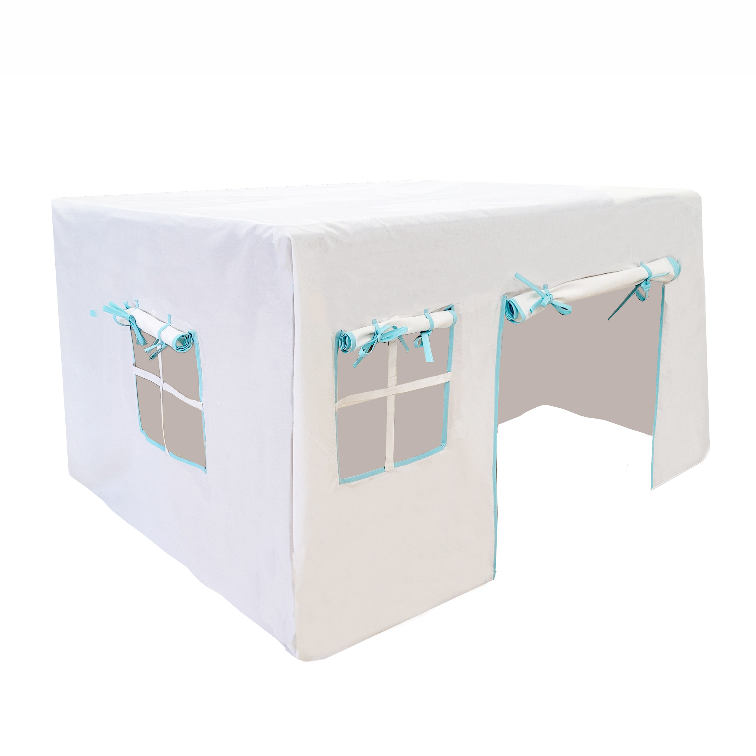 این محصول مخصوص میز های ناهار خوری مستطیل شکل می باشد و فاقد سازه است، می توانید چادر را مانند یک رومیزی روی میز ناهار خوری قرار دهید و از فضای زیر میز، بدون اشغال کردن فضای زیاد و ایجاد نمای شلوغ و بهم ریخته در خانه، برای بازی کودکان بهره ببرید. این چادرها میتوانند دنیایی جذاب و تخیلی را برای کودکان فراهم کنند و به آنها کمک کنند تا مهارتهای مختلفی را در زمینههای خلاقیت، مهارت حل مسئله و تعامل اجتماعی بیاموزند.
