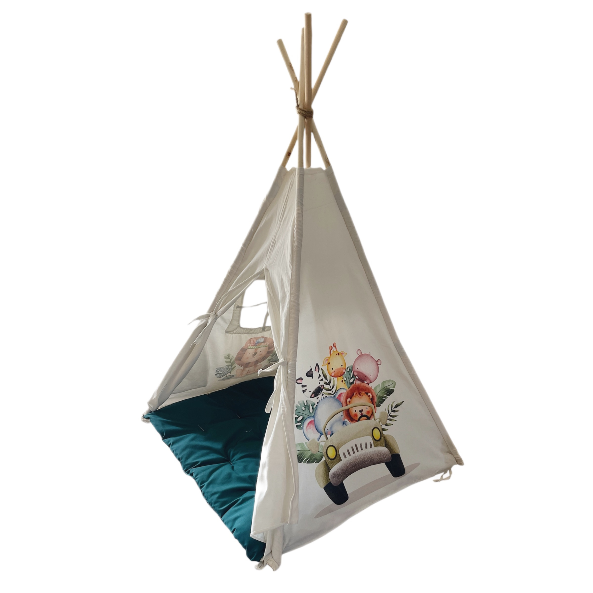 چادر سرخپوستی کودک همراه با تشک و چوب تاشو که قابل حمل برای سفر ، باغ و پارک میباشد.تشک این محصول دورو میباشد که یک سمت سبز و سمت دیگر رنگ خود چادر میباشد.کاملا قابل شستشو و دارای بهترین کیفیت چاپ میباشد.